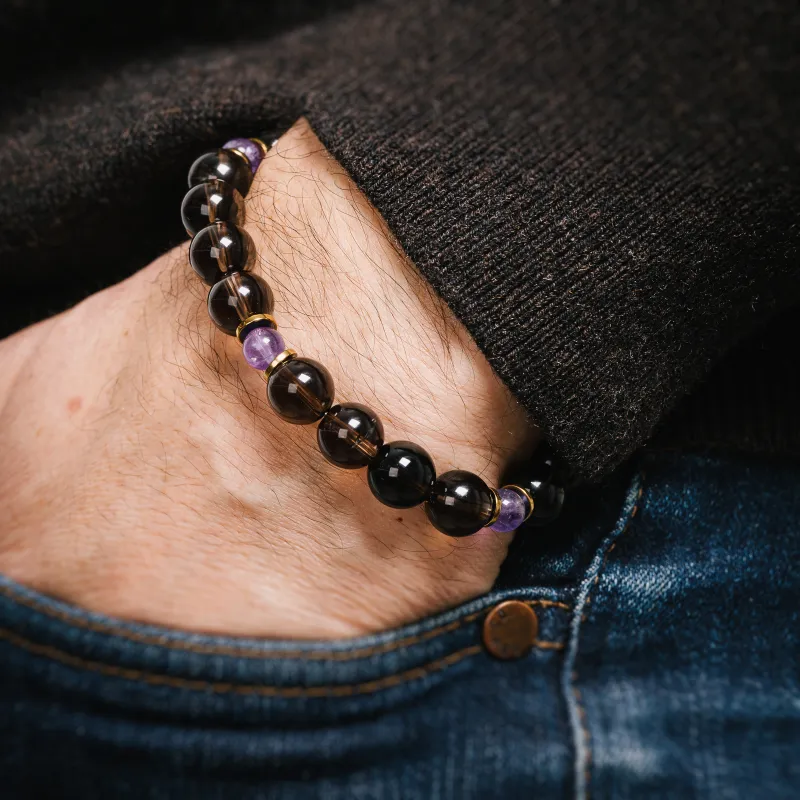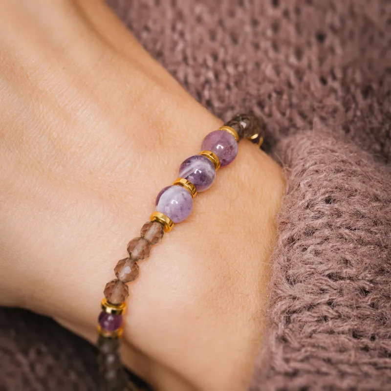 Bransoletki wykonane są z wysokiej jakości gumki, dzięki czemu są komfortowe w noszeniu i idealnie dopasowują się do nadgarstka. Kuleczki hematytu, ametystu i kwarcu dymnego, o rozmiarze od 4 do 8 mm, dodają im subtelnego uroku. Połysk kamieni nadaje im elegancji i sprawia, że pięknie odbijają światło.