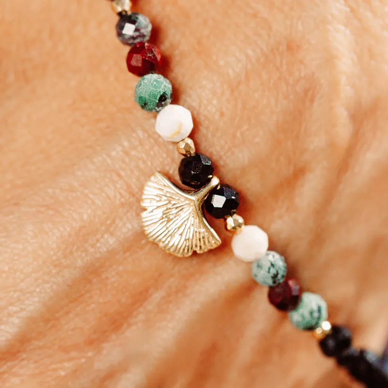 Dodatkowo bransoletka ozdobiona jest eleganckim liściem miłorzębu, symbolem długowieczności, mądrości i odporności na przeciwności losu.