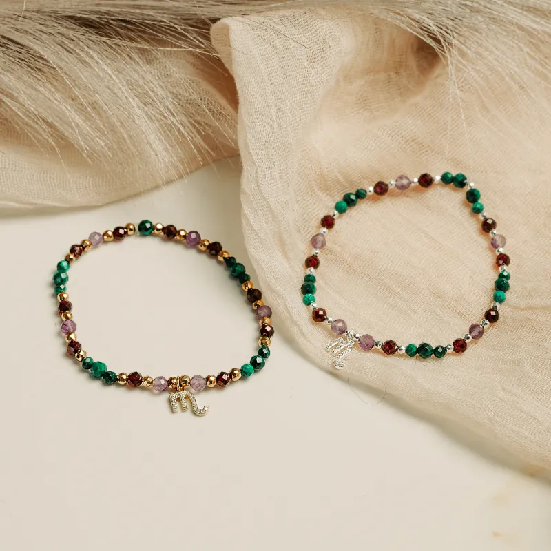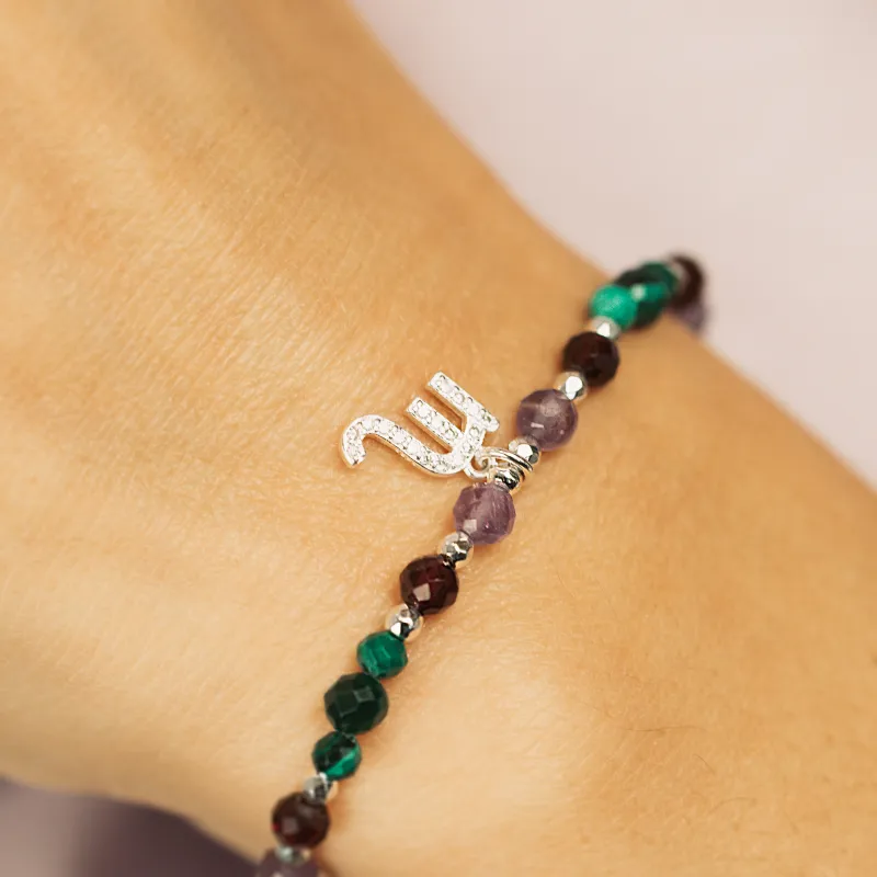 Ametyst, Malachit, Granat - srebrna bransoletka na koncentrację, miłość, sukces - Skorpion