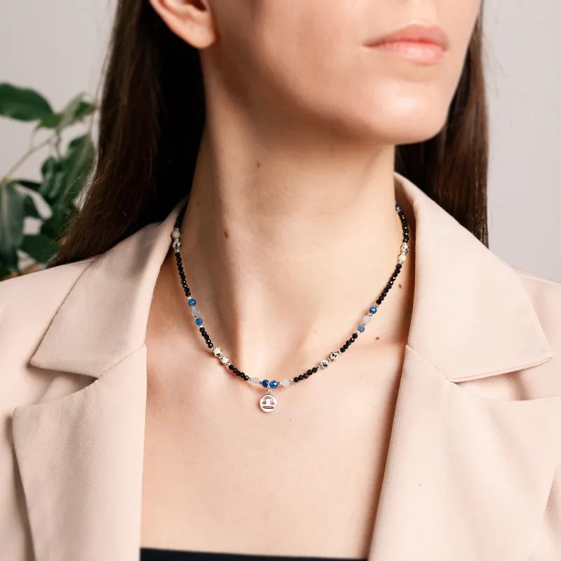 Akwamaryn, Kyanit, Jaspis, Turmalin, Hematyt - srebrny naszyjnik na zdrowie, odwagę, harmonię - Waga