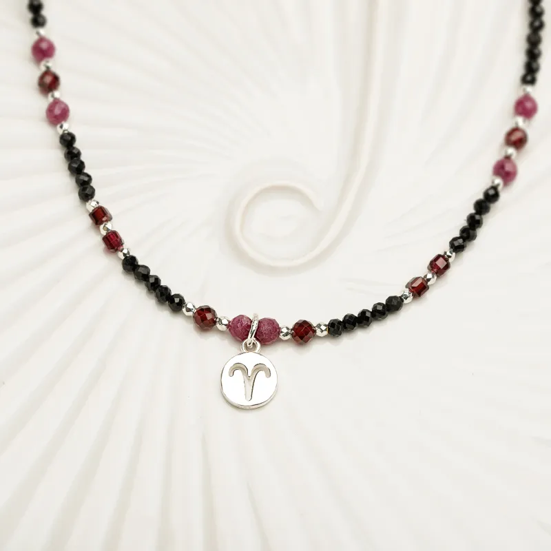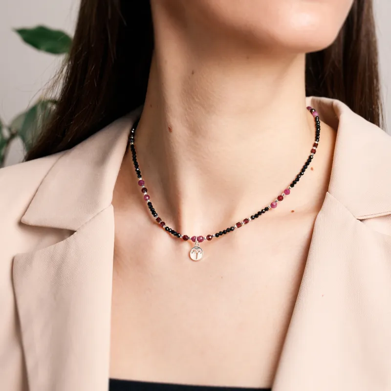 Rubin, Granat, Turmalin - srebrny naszyjnik na radość, miłość, szczęście - Baran
