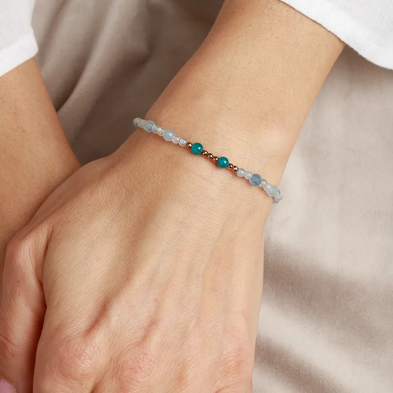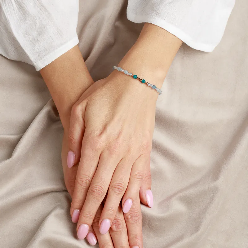 Apatyt, Akwamaryn, Hematyt - srebrna pozłacana bransoletka na kreatywność, harmonię, uzdrowienie - Mama