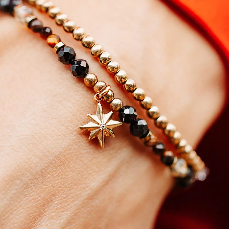 W kolekcji Stella, gdzie gwiazdy prowadzą nas przez chwile zwątpienia, połączyliśmy trzy dary ziemi w jedną harmonijną całość. Ta unikalna bransoletka damska została zaprojektowana, by służyć jako osobista tarcza i magnes na dobre zdarzenia. Nosząc na sobie bransoletkę z Tygrysiego Oka, Cytrynu i Hematytu, celebrujesz swoją siłę, dążenie do pełni życia i pragnienie uzdrowienia wewnętrznego świata.