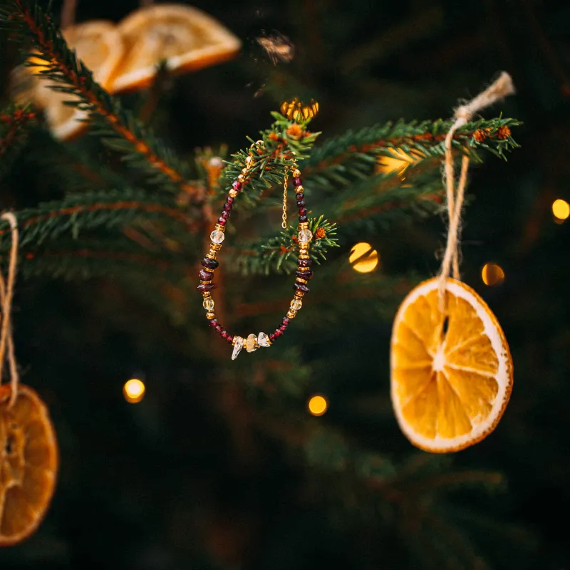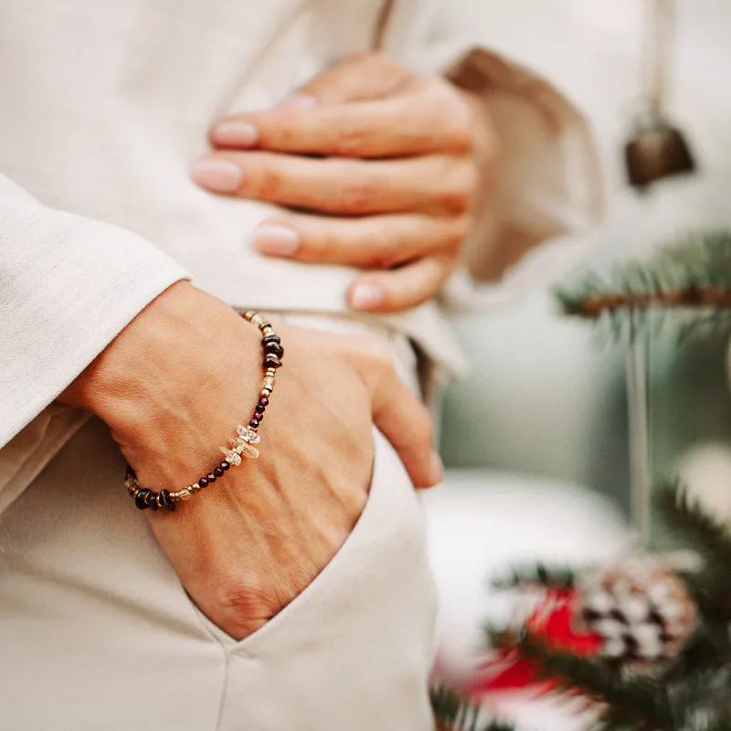 Każdy element został starannie dobrany, by towarzyszyć Ci w drodze do celu. Nieważne, czy szukasz inspiracji, czy materialnego dostatku, ten złoty akcent na nadgarstku jest niczym mapa skarbów, przypominająca o Twojej wewnętrznej mocy i otwarciu na szczęście. Oto kompozycja Cytrynu, Granatu i Hematytu – symboliczne połączenie, które wspiera dążenie do bogactwa we wszystkich jego wymiarach.