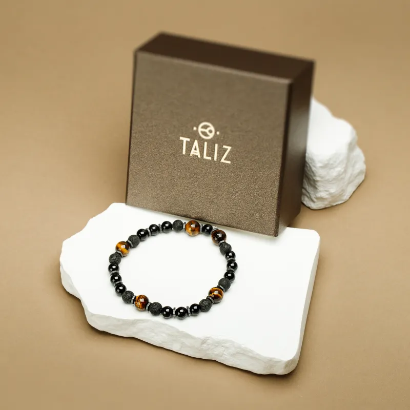 Turmalin Tygrysie Oko, Lawa Wulkaniczna - bransoletka na ochronę, bogactwo, uzdrowienie - Jego styl