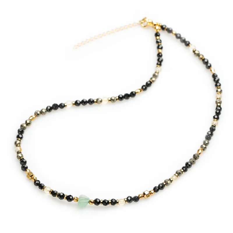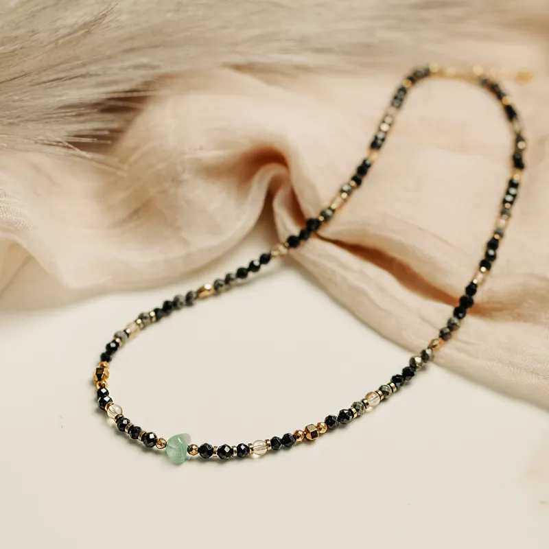 Wysoka jakość i dbałość o detale sprawiają, że ten naszyjnik jest równie trwały, co piękny. Połączenie różnych kształtów kamieni (kulka, walec, kulka fasetowana) nadaje mu nowoczesny i unikalny charakter.
