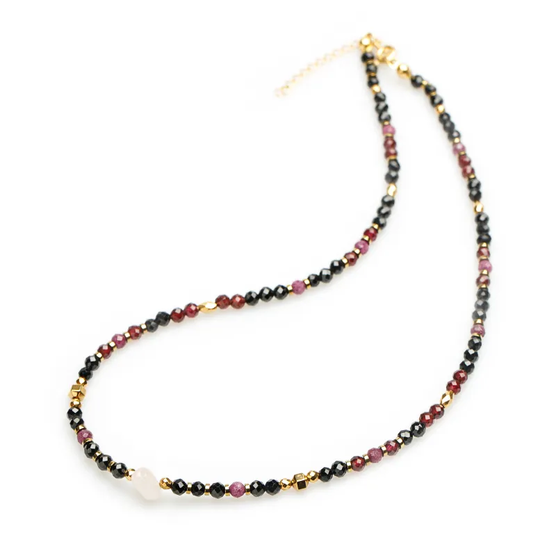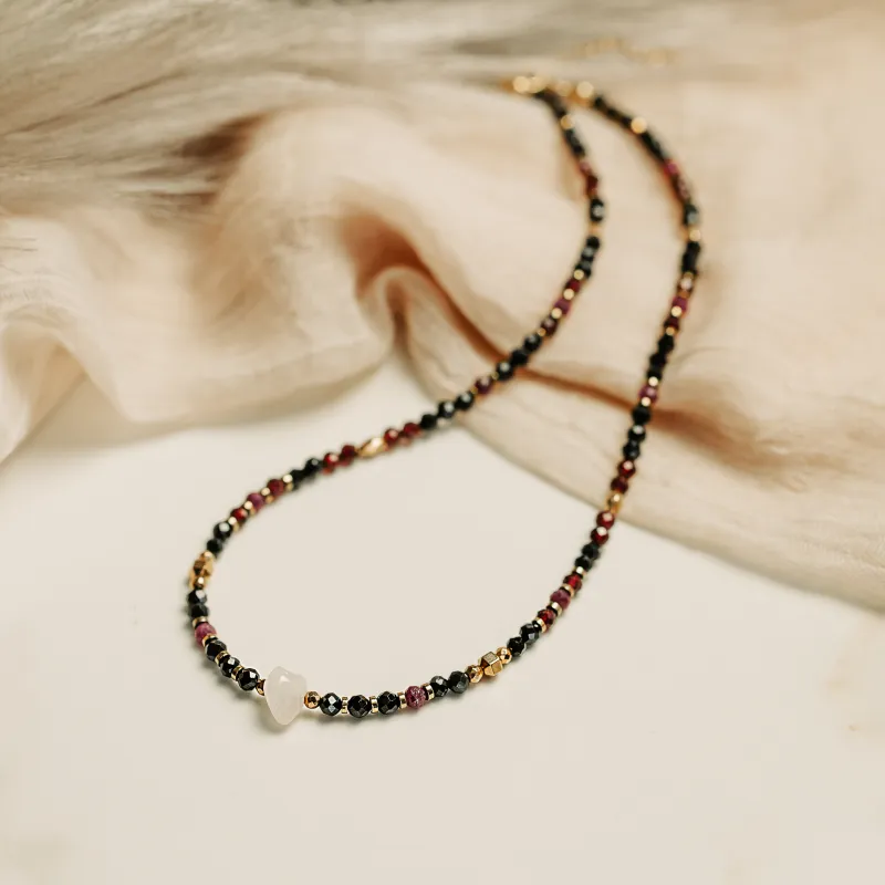 Kwarc Różowy, Rubin, Granat - srebro pozłacane naszyjnik na miłość, harmonię, szczęście - Lumina