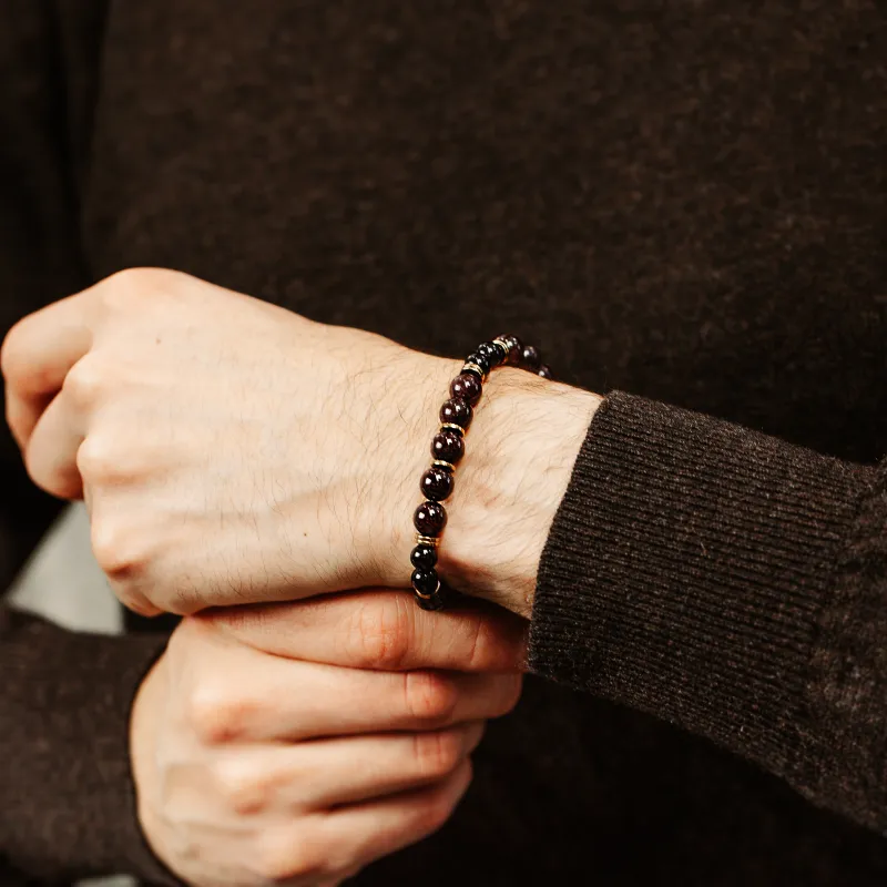 Dla tych, którzy cenią autentyczność i głębię, stworzyliśmy kompozycję Turmalin, Granat, Hematyt - bransoletka na zdrowie, miłość, kreatywność – idealny akcent w codzienności, przypominający o ważnych wartościach. Połączenie głębokiej czerni, złocistego blasku i intensywnej czerwieni tworzy harmonijną paletę, która pasuje do każdej męskiej dłoni. To wybór tych, którzy świadomie kształtują swój los.